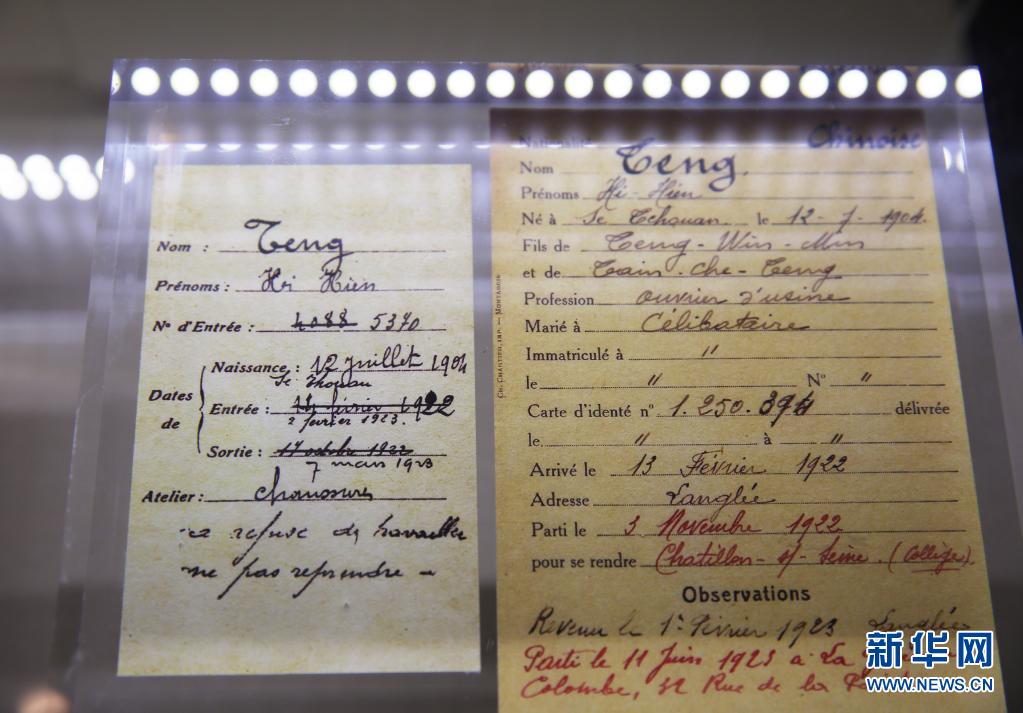 这是3月22日在中国旅法勤工俭学蒙达尔纪纪念馆拍摄的邓小平当年在法国的居留登记卡和工作档案卡。新华社记者 高静 摄