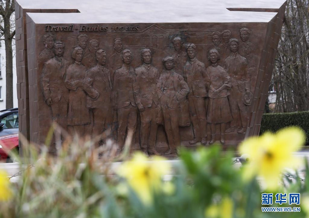 这是3月22日在法国蒙达尔纪火车站前的邓小平广场上拍摄的《百年丰碑》雕塑。2019年,为纪念留法勤工俭学运动100周年,大型雕塑《百年丰碑》在邓小平广场落成。新华社记者 高静 摄